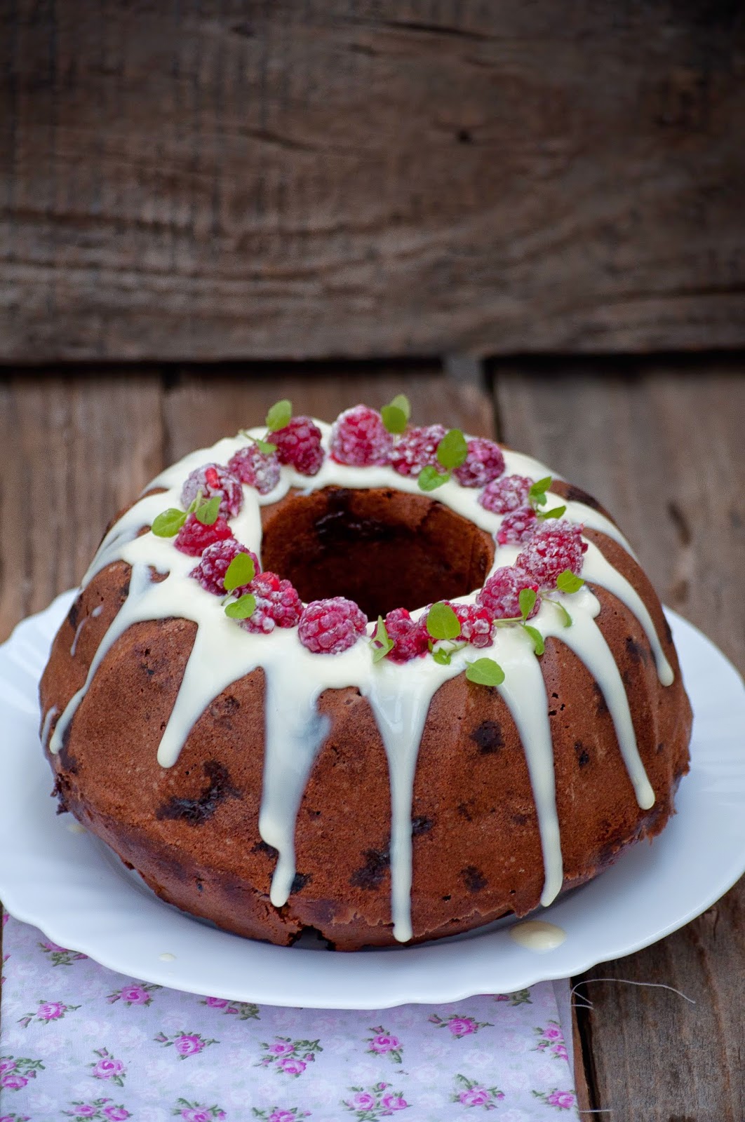 Мъфини с бял шоколад и шоколадово-малинова глазура